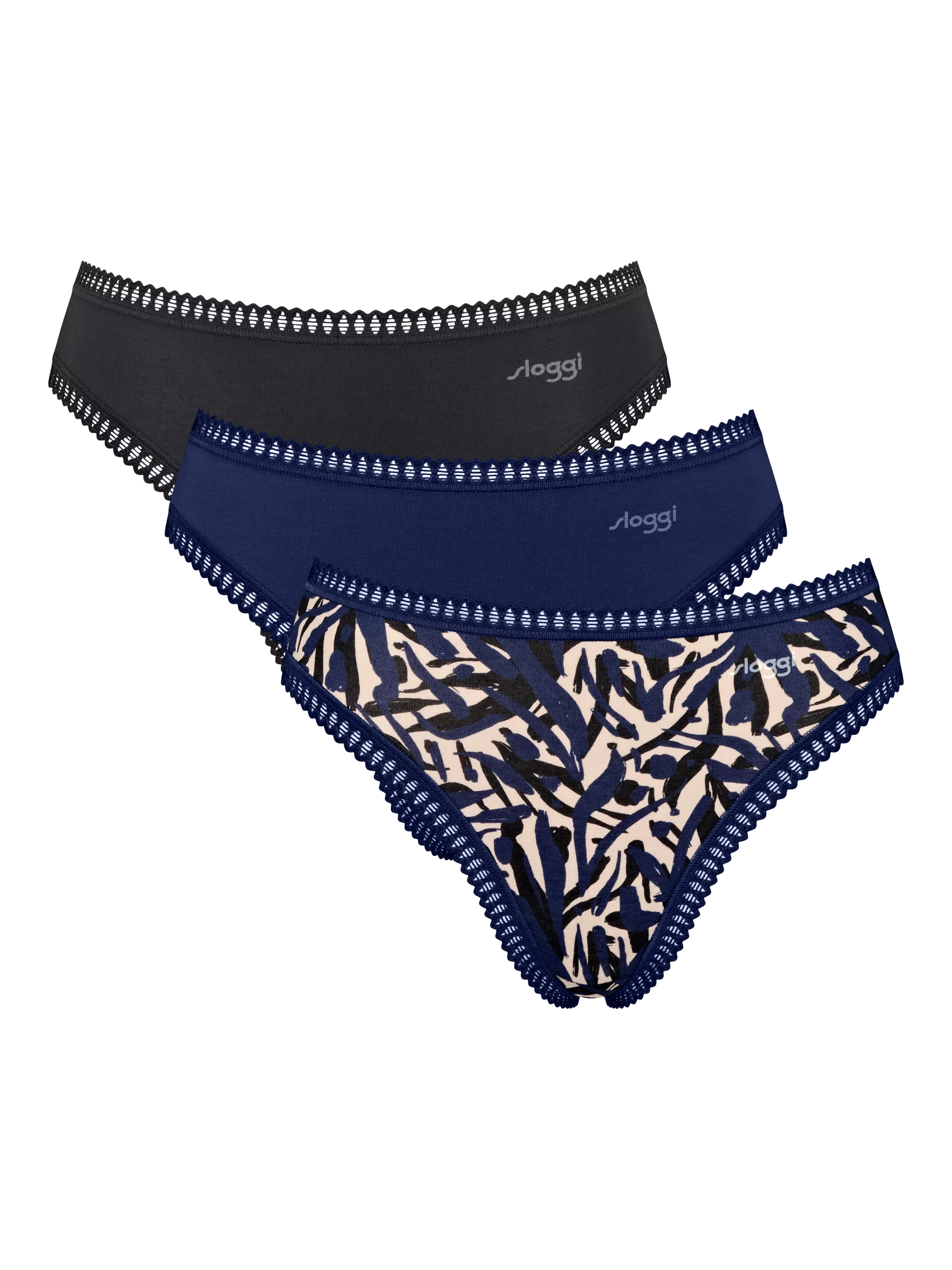 sloggi Basic Maxi Knickers, Pack of 3, Grey/Navy/Cream