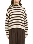 Stripe Turtleneck Jumper, Chocolate/Cream