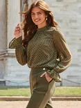 Textured Chevron Blouse, Khaki Green