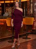 Sosandar Ruched Asymmetric Dress, Burgundy