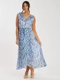 Printed Chiffon Frill Wrap Midi Dress, Blue