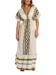 V Neck Jacquard Maxi Dress, Cream/Multi