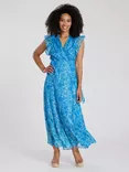 South Beach Printed Chiffon Frill Wrap Midi Dress, Multi, Multi