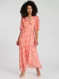Printed Short Sleeve Wrap Midi Dress, Coral