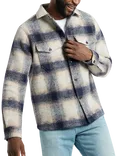 Wool Blend Straight Fit Check Overshirt, Navy Check