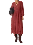 Cassie V-Neck Ruffle Midi Dress, Terracotta