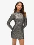 Sequin Mock Neck Mini Dress, Gunmetal Sequin