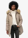 Superdry Everest Faux Fur Parka Jacket, Deep Beige Slub