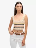 Lace Up Back Cropped Crochet Vest Top, Buttercream/Multi