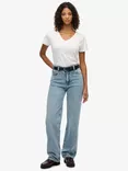 High Rise Wide Leg Jeans, Mid Blue Denim