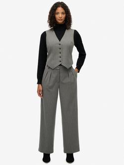 Mid Rise Wide Leg Tailored Trousers, Grey Pinstripe