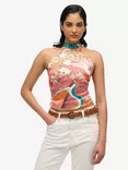 Floral Jacquard Halter Neck Top, Pink/Multi