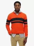Superdry Cotton Stripe Half Zip Knit Jumper, Bold Orange/Navy£59.99View this product in other colours by selecting one of the following:This colour is availableThis colour is unavailable