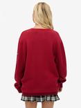 Superdry Oversized V-Neck Jumper, Bordeaux Red