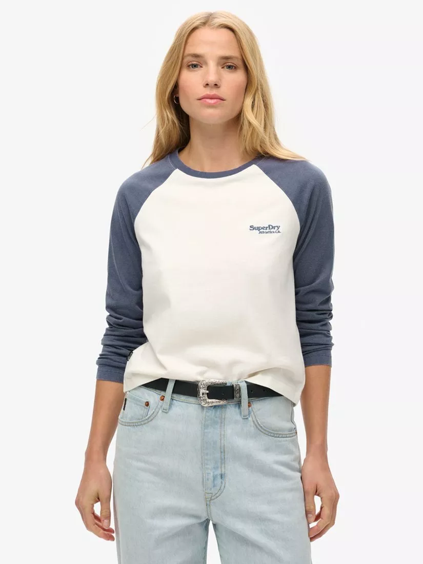 SuperdryEssential Logo Long Sleeve Baseball Top, Mariner Navy/Optic£26.99Mariner Navy/Optic is availableNavy/Mariner Navy is availableNavy/Desert Bone is availableGrey Marl/Desert Bow is availableRed/Glacier Grey Marl is available+ More colours available