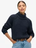 Slouchy Stitch Roll Neck Wool Blend Jumper, Navy Marl