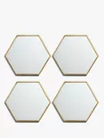 Hexagonal Mirror Coasters, Set of 4, Brass