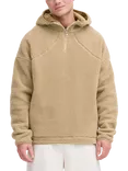 Berri Embossed Zip Neck Borg Hoodie, Cornstalk
