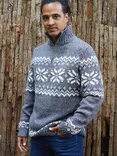 Email when available, The Little Tailor Snowflake Fair Isle Chunky Zip Neck Knit Jumper, CharcoalThe Little Tailor Snowflake Fair Isle Chunky Zip Neck Knit Jumper, Charcoal£79.00