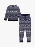 The Little Tailor Reindeer Christmas Fairisle Pyjamas, Navy