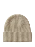Ribbed Pure Lambswool Beanie Hat, Natural, One Size