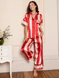 Satin Short Sleeve Striped Pyjama Set, Red
