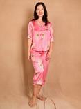 Peacock Feather Satin Capri Pyjama Set, Pink
