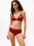 Metallic Thread Floral Lace Triangle Bra, Rouge