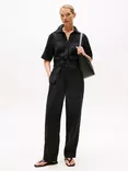 Short Sleeve Belted Linen Blend Jumpsuit, Black