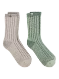 Chunky Wool Blend Thermal Socks, Pack of 2, Grey/Sage