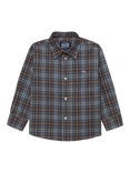Trotters Kids' Oliver Brushed Cotton Long Sleeved Shirt, Navy/Camel Check, Navy/Camel Check