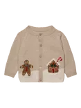 Baby Wool Blend Gingerbread Man Cardigan, Light Oatmeal