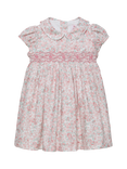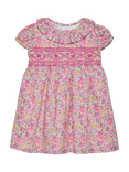 Trotters Kids' Bella Cotton Long Sleeved Smocked Dress, Pink Floral, Pink Floral