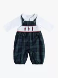 Trotters Baby My First Christmas Tartan Dungarees & Intergrated Eton Collar Bodysuit, Navy/Multi£60.00