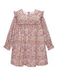 Trotters Kids' Bella Cotton Long Sleeved Smocked Dress, Pink Floral, Pink Floral