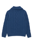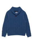 Trotters Kids' Finn Shawl Collar Cable Knit Jumper, Denim Blue Marl