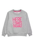 Email when available, Trotters Kids' Here Comes Trouble Cotton Sweatshirt, Grey/PinkTrotters Kids' Here Comes Trouble Cotton Sweatshirt, Grey/Pink£48.00 – £52.00