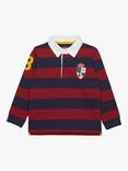 Trotters Kids' Cotton Stripe Rugby Shirt, Navy/Red