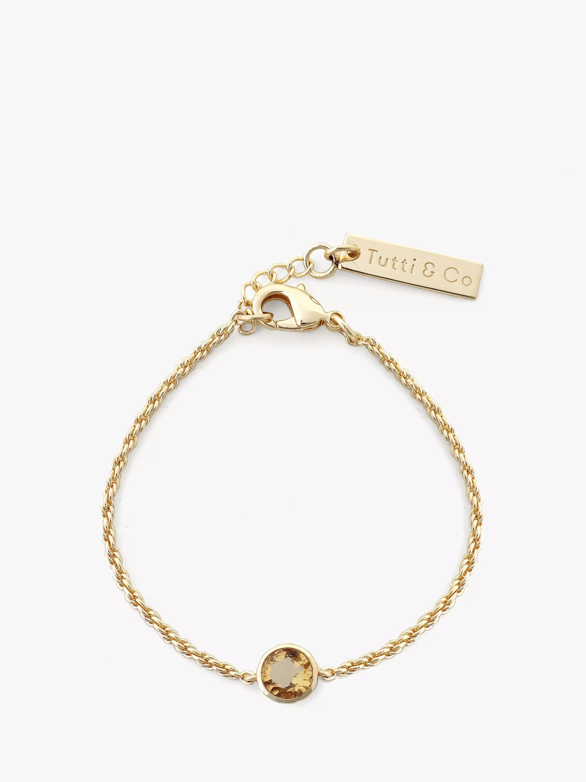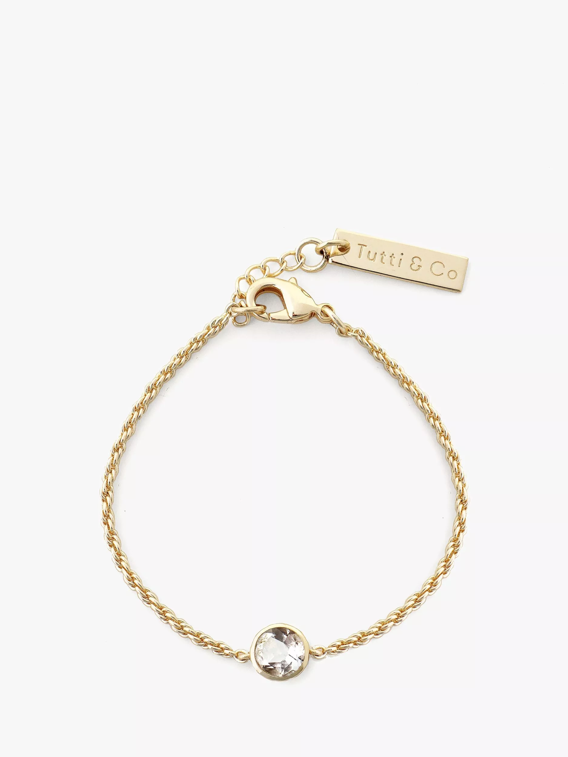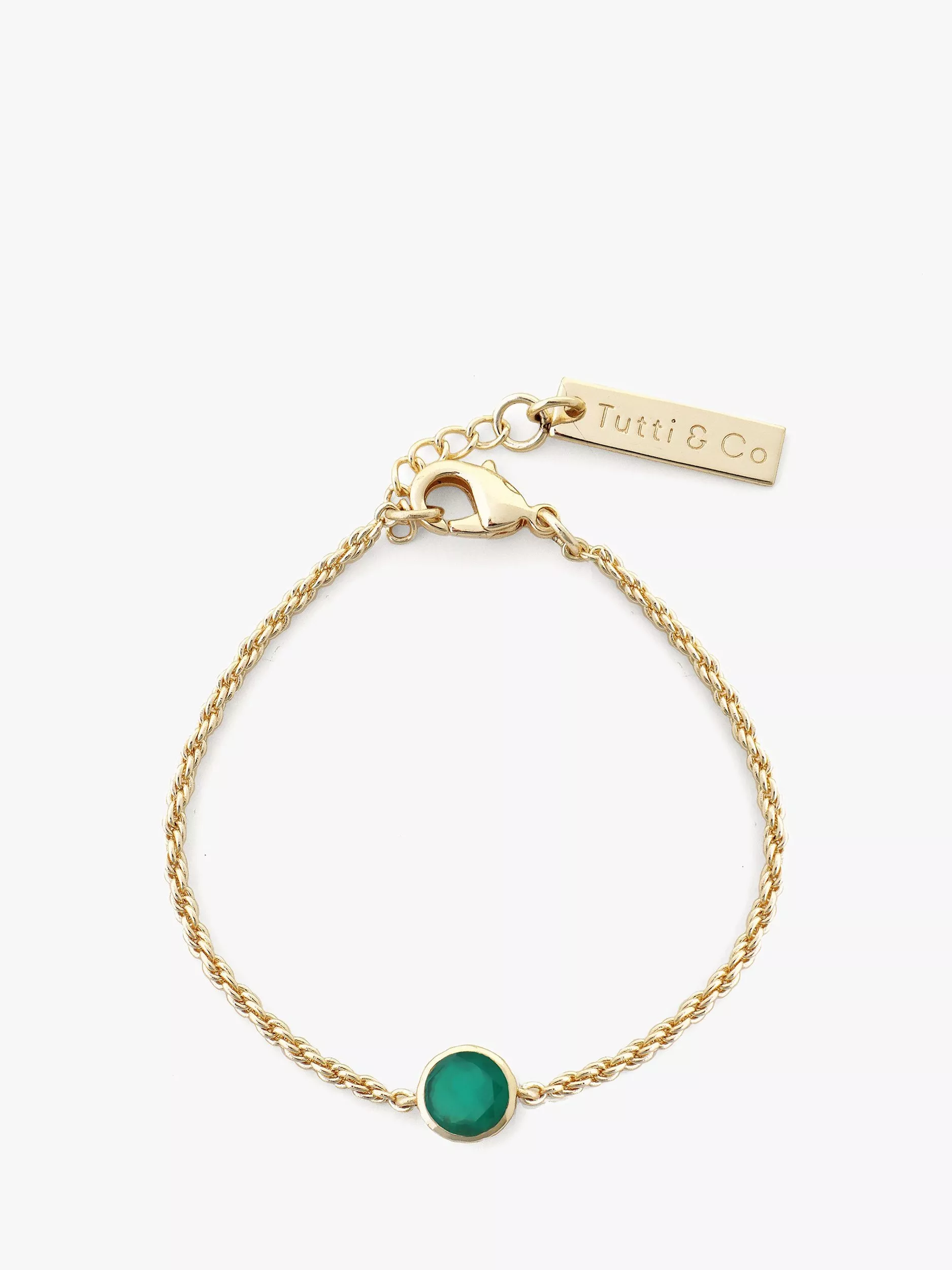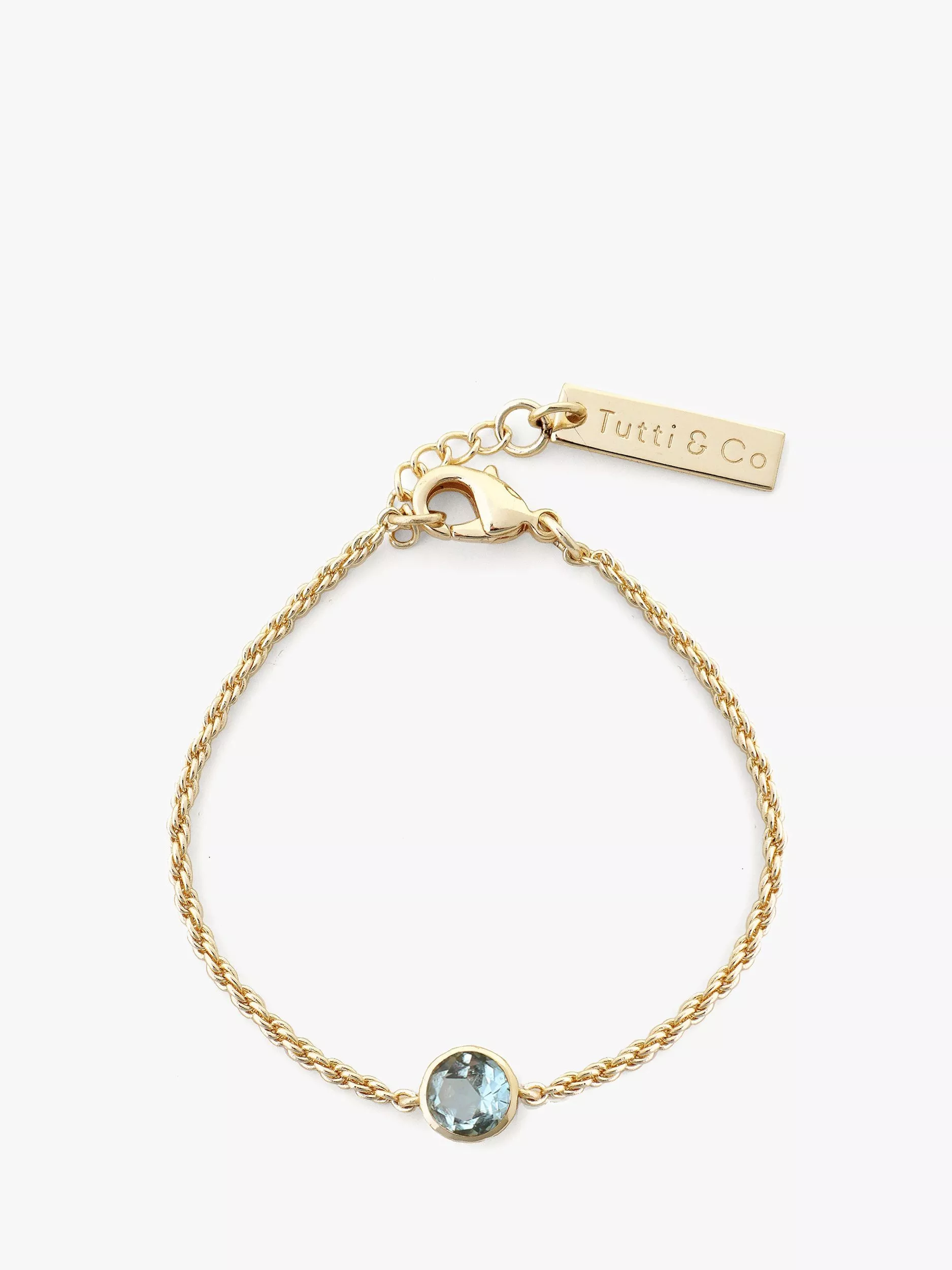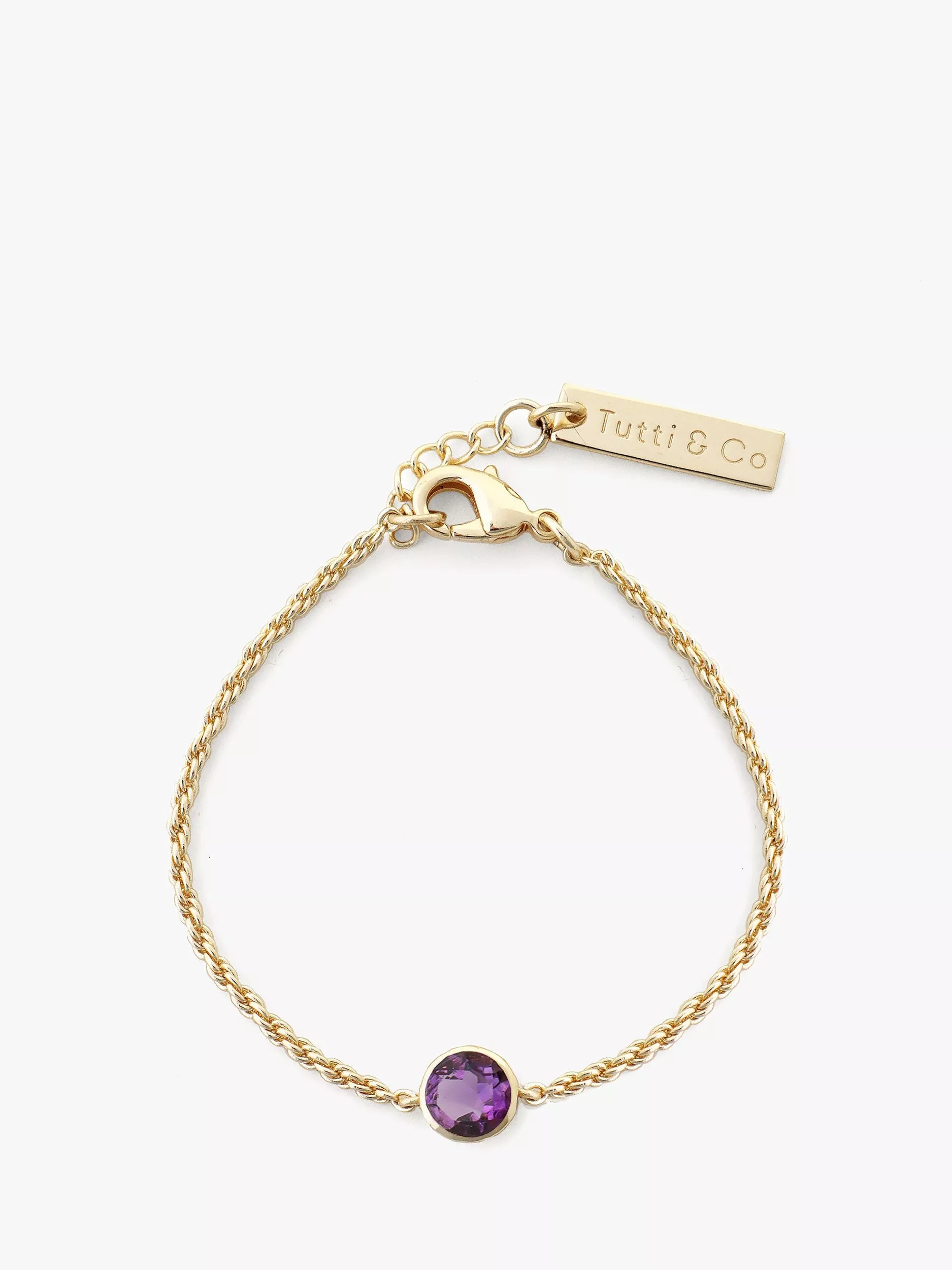 TUTTIBirthstone Bracelet, Gold£30.00Amethyst/February is availableAquamarine/March is availableWhite Topaz/April is availableGreen Onyx/May is availablePearl/June is availableRuby/July is availablePeridot/August is availableLapis/September is availableMoonstone/October is availableCitrine/November is availableGarnet/January is unavailableBlue Topaz/December is unavailable+ More colours available