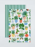 Plants & Striped Print Cotton Tea Towels, Set of 2, Green/Multi