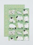 Sheep Print Cotton Tea Towels, Set of 2, Green/Multi