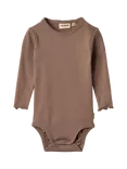 Baby Regitze Cotton Bodysuit, Toffee Brown