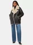 Petite Faux Fur Aviator Jacket, Black