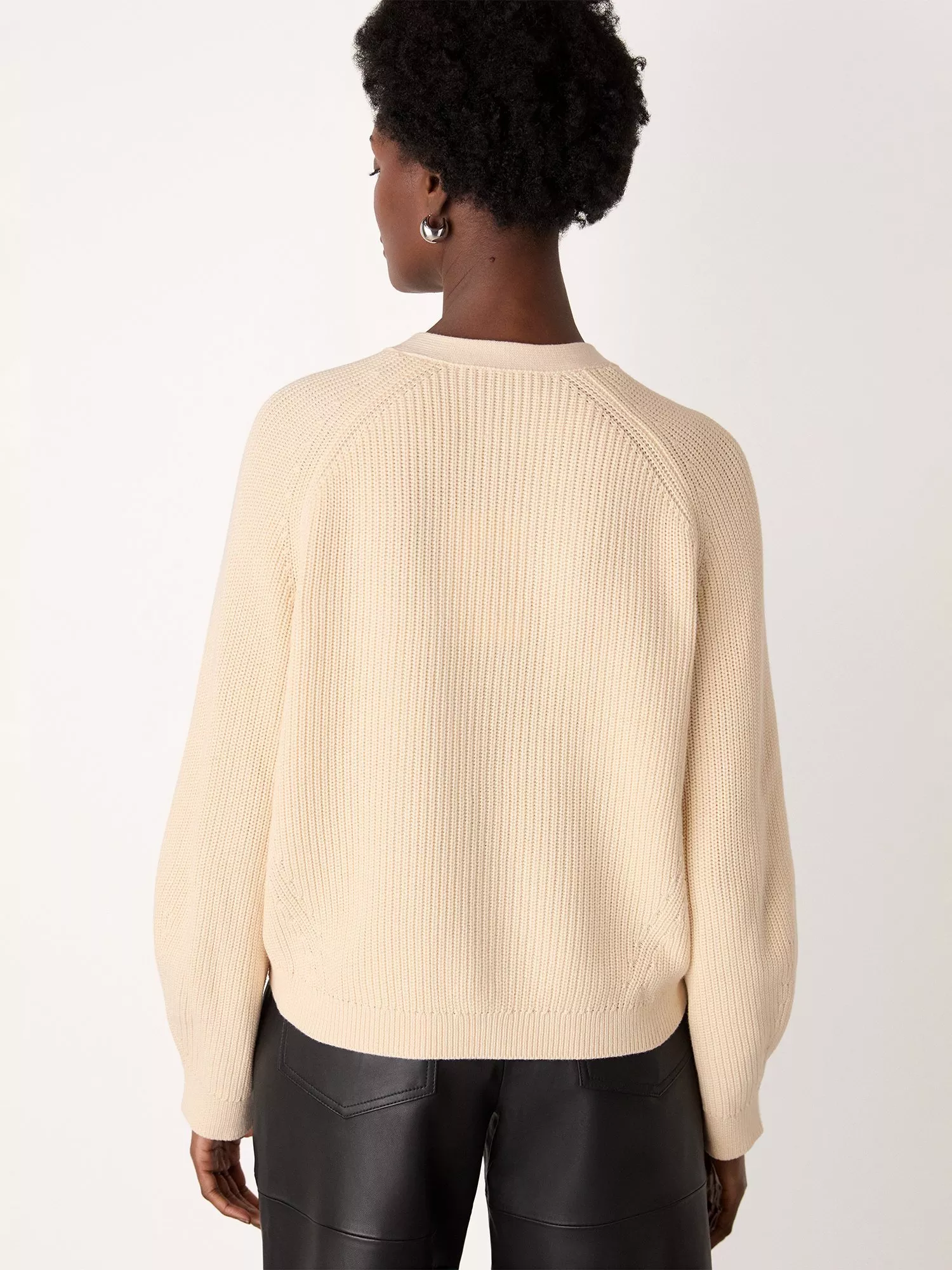 Whistles Ribbed V-Neck Cardigan, Ivory