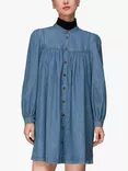 Chambray Denim Mini Trapeze Dress, Blue