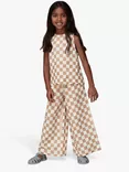 Kids' Linen Blend Checkerboard Wide Leg Trousers, Multi