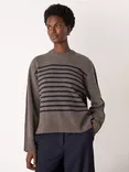 Whistles Contrast Stripe Wool Blend Jumper, Navy/Multi, Navy/Multi