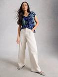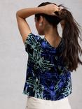White Stuff Nelly Floral Notch Neck T-Shirt, Blue/Multi