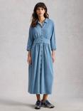White Stuff Annie Organic Cotton Blend Jersey Shirt Dress, Blue