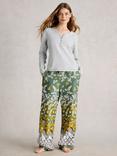 White Stuff Penny Cotton Blend Long Sleeve Button Neck Pyjama Top, Grey Marl
